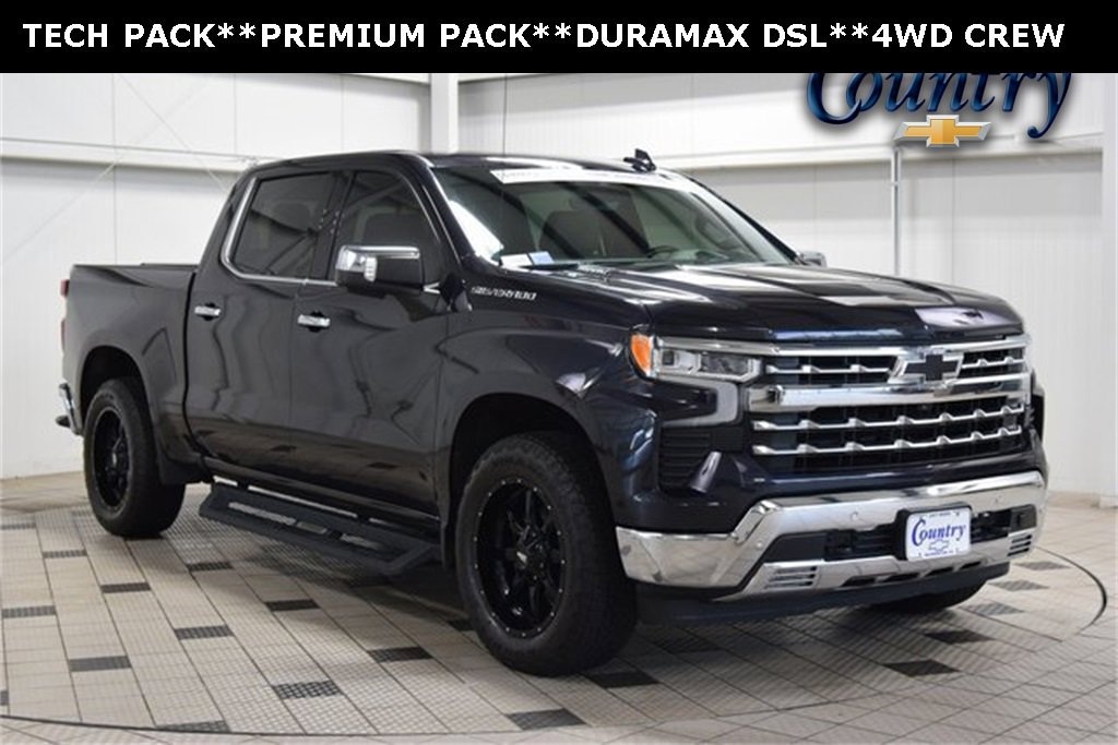 2023 Chevrolet Silverado 1500 LTZ Dark Ash Metallic 4WD 3.0L I6 10-Speed Automatic10-Speed Automatic, 4WD, Gideon/Very Dark Atmosphere Leather, 2nd Row Heated Outboard Seats, Adaptive Cruise Control, Forward Collision Alert, Front Pedestrian Braking, HD Surround Vision, Heated Driver & Front Outboard Passenger Seats, Lane Keep Assist w/Lane Departure Warning, LTZ Convenience Package II, LTZ Premium Package, Power Sunroof, Rear Cross Traffic Alert-Braking, Rear Pedestrian Alert, Remote keyless entry, Tilt steering wheel, Universal Home Remote, Ventilated Driver & Front Passenger Seats.CHECK US OUT!!!...BIG CITY SELECTION & SAVINGS WITH SMALL TOWN HOSPITALITY...