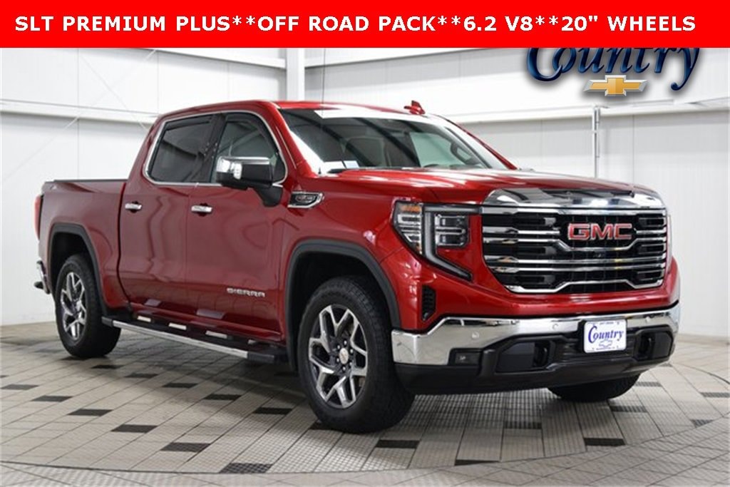 2023 GMC Sierra 1500 SLT Volcanic Red Tintcoat 4WD EcoTec3 6.2L V8 10-Speed Automatic10-Speed Automatic, 4WD, Dark Walnut/Slate Leather, Apple CarPlay/Android Auto, Forward Collision Alert, Front Pedestrian Braking, Heated Driver & Front Outboard Passenger Seating, Rear Cross Traffic Braking, Rear Pedestrian Detection, Remote keyless entry, Tilt steering wheel, Ventilated Driver & Front Passenger Seats.CHECK US OUT!!!...BIG CITY SELECTION & SAVINGS WITH SMALL TOWN HOSPITALITY...